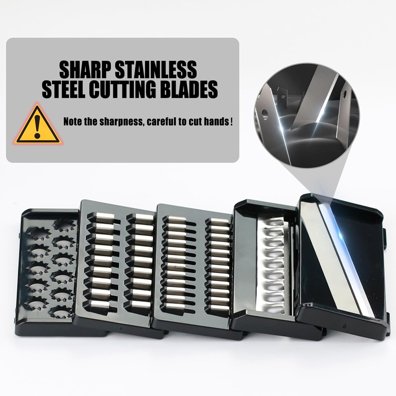 - γπππππππππ πππππ πππππγVegetable cutter are made of durable 402 stainless steel material, and the manufacturing technology of stamping blade can ensure the sharpness of the blade to a great extent, so that it can cut and grind smoothly.