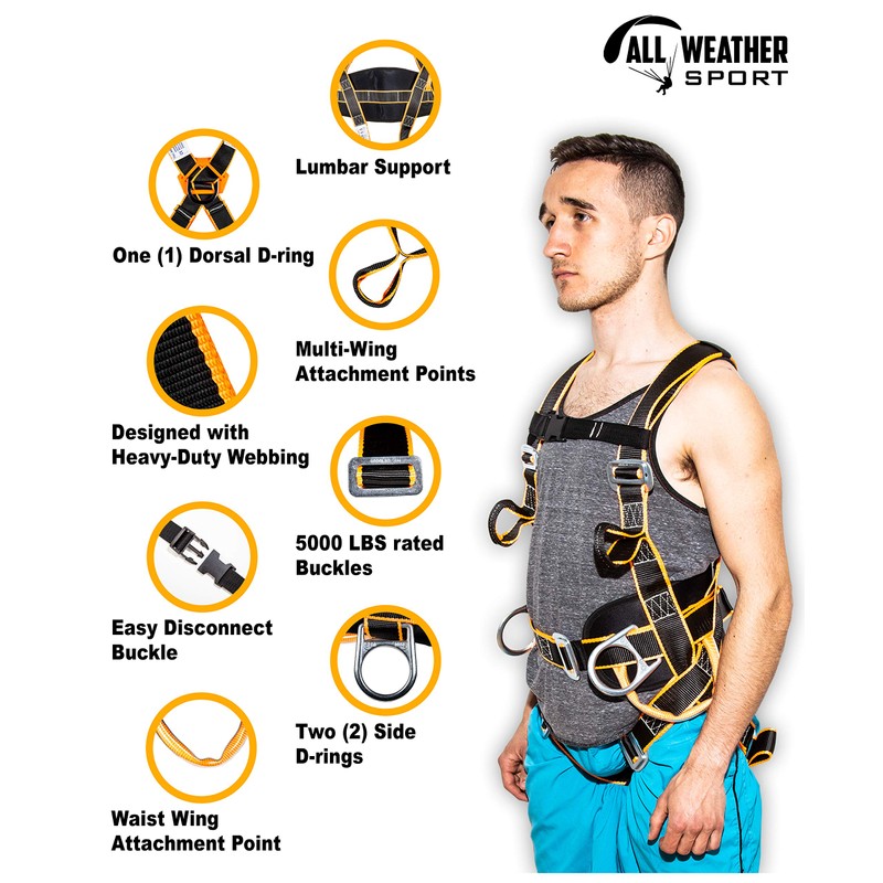 - DESIGN: The parachute style wing equipment is rated up to 5000 lbs for all types of flying sports!