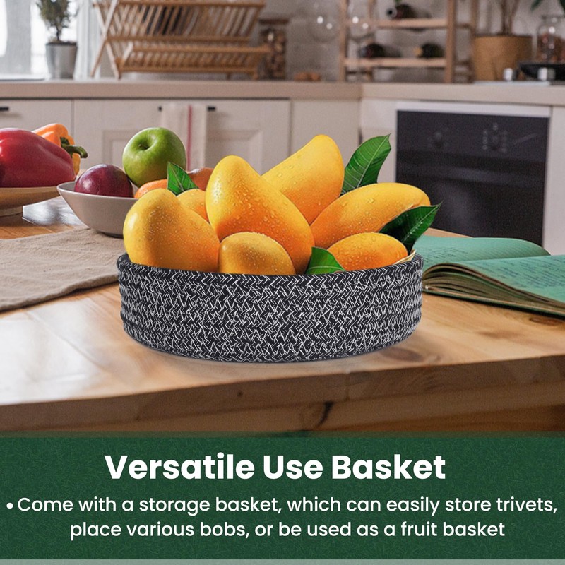 - Ideal Size: All sewn by sewing machine handmade, with a thickness of 0.35 inches (0.9 cm), KITLAB trivets offer effective heat insulation. The 8 inch (20 cm) diameter is perfect for placing dishes, pots, pans, and even plants. Come with an 8.66 inch (22 cm) diameter kitchen storage basket, which easily stores trivets, places various bobs, or be used as a fruit basket
