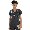 - THREE POCKETS — Our women's scrub tops feature a left chest pocket for lightweight items without sacrificing comfort. Additionally, two patch pockets on the lower front provide ample storage for essentials like swabs, notebooks, pens, and smartphones. Whether you're on the job or unwinding, enjoy practical comfort with everything you need at your fingertips.