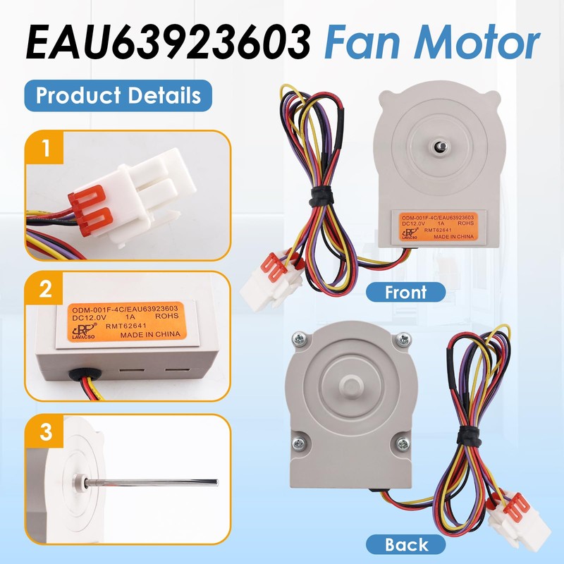 - 【Efficient Cooling】The EAU63923603 Refrigerator Evaporator Fan Motor helps to circulate cool air efficiently within the freezer, ensuring optimal temperature regulation and food preservation.