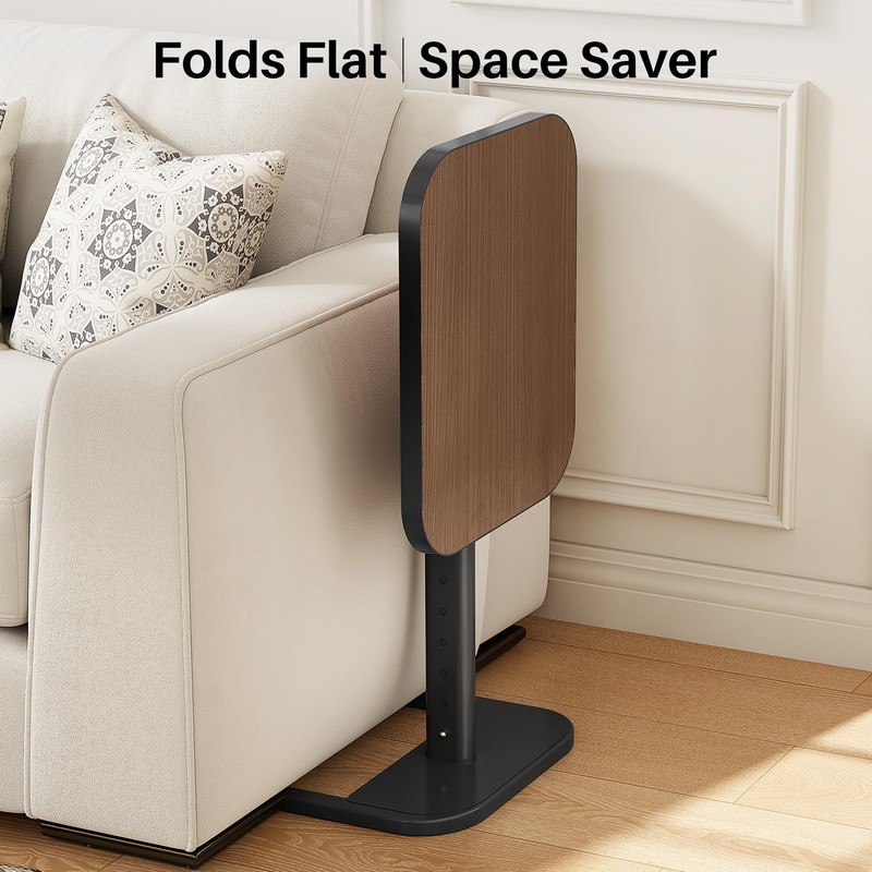 Kitstorack TV Tray Table, Adjustable Height & 90° Flip-Over Panel Design, Sofa Arm End Side Table for Eating Laptop Couch Bed Dinner or Small Spaces, Espresso