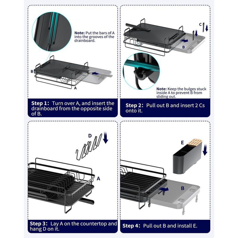 - ANTI-SLIP SILICONE CAPS: The four anti-slip silicone caps can effectively prevent the large dish drying rack from slipping. And there won't be any scratches on the counter as well. Moreover, the heightened fence around the rack prevents the falling of dishes. Rest assured that your kitchenware would be safe in this rack.