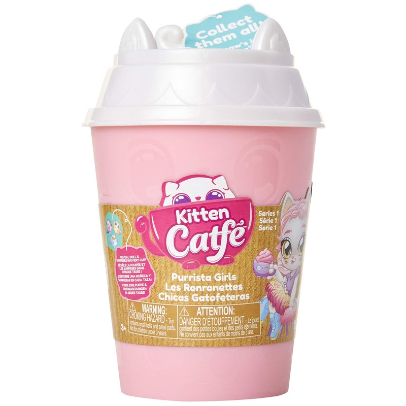 Welcome to the Kitten Catfe, where Purrista girls are serving up delicious catpurrcinos, smoothies, and so much more! Each adorable Purrista girl comes hidden in a to-go cup along with so many fun surprises. Open the cup to reveal recipe card, cat bed, 1 Biscatti bag, 1 creamer cup, 1 sweet packet, and 1 tea bag. Open each mystery packet to find out which Purrista girl you got. Each Purrista girl comes with a complete outfit and 1, 2, or 3 meowbles(tm) kittens. Put the tea bag In cold water, see it dissolve before your eyes, and discover how many meowbles(tm) kittens you got. Use the food-grade reusable cup to take on-the-go for cold drinks. Suggested for kids ages 3 and up.