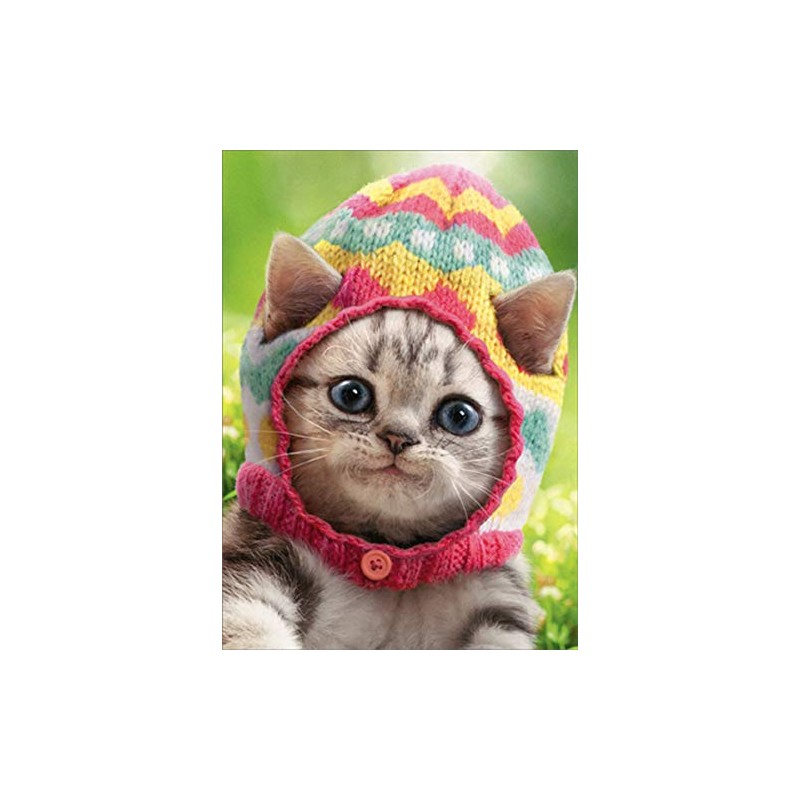 Kitten Wears Knit Egg Cap - Avanti Cute Cat Easter Card (Greeting Card)