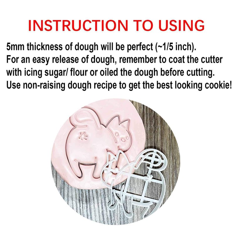 - Consejos esenciales: 5 mm de grosor de masa será perfecto (~1/5 pulgadas). Para una fácil liberación de la masa, recuerda cubrir el cortador con azúcar glaseado/harina o engrasar la masa antes de cortar. Utiliza una receta de masa que no se levanta para obtener la galleta de mejor aspecto