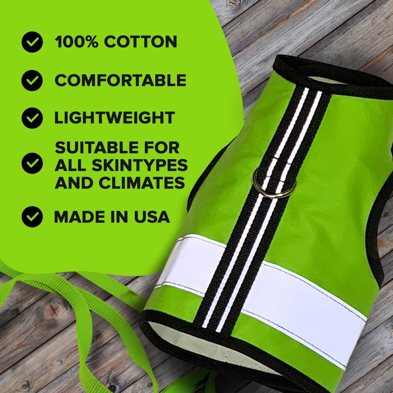 Kitty Holster - Reflective Cat Harness, High-Visibility Harness for Cats for Daytime and Nighttime, Secure Cat Vest for Walking and Travelling, Breathable and Washable Cotton, XL, Loud Lime
