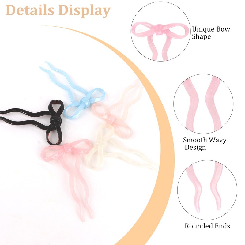 - Cute Bow & Secure Wavy Design: Each hairpin features an adorable bow on top, adding a sweet touch to your look. The U-shaped thick acrylic hair pins for buns also have a subtle wave at the bottom for extra grip and stability.