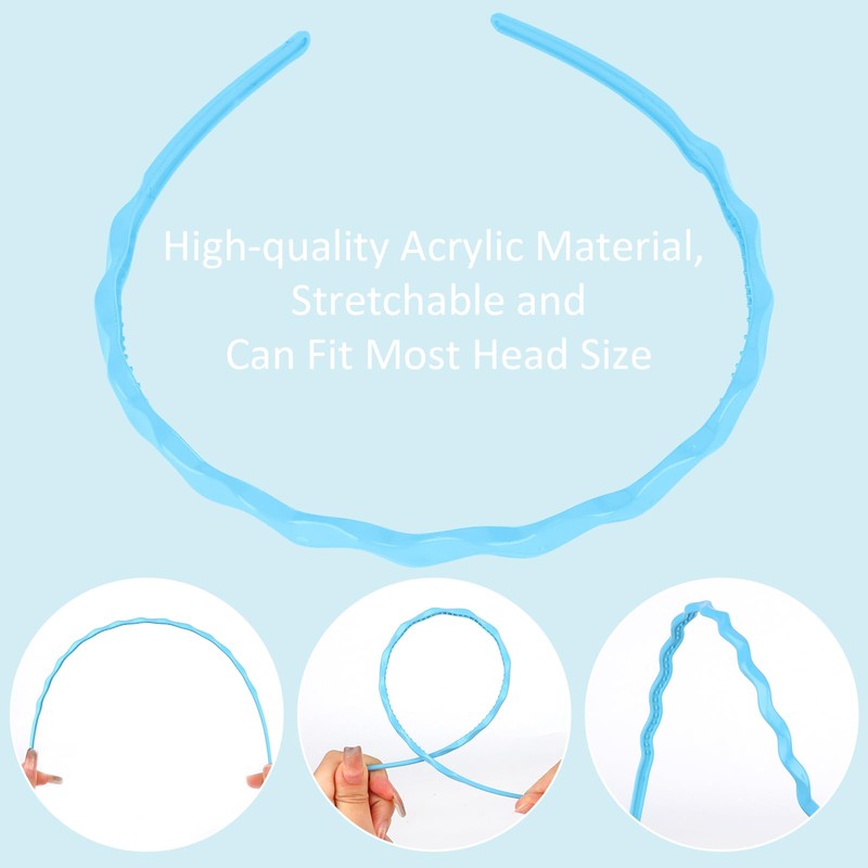 - Durable and Glossy Finish: Made from high-quality acrylic, our colorful non slip headbands are sturdy, long-lasting, and feature a sleek glossy surface for an extra polished touch. These candy-colored wavy hair bands are both lightweight and strong enough for everyday wear.