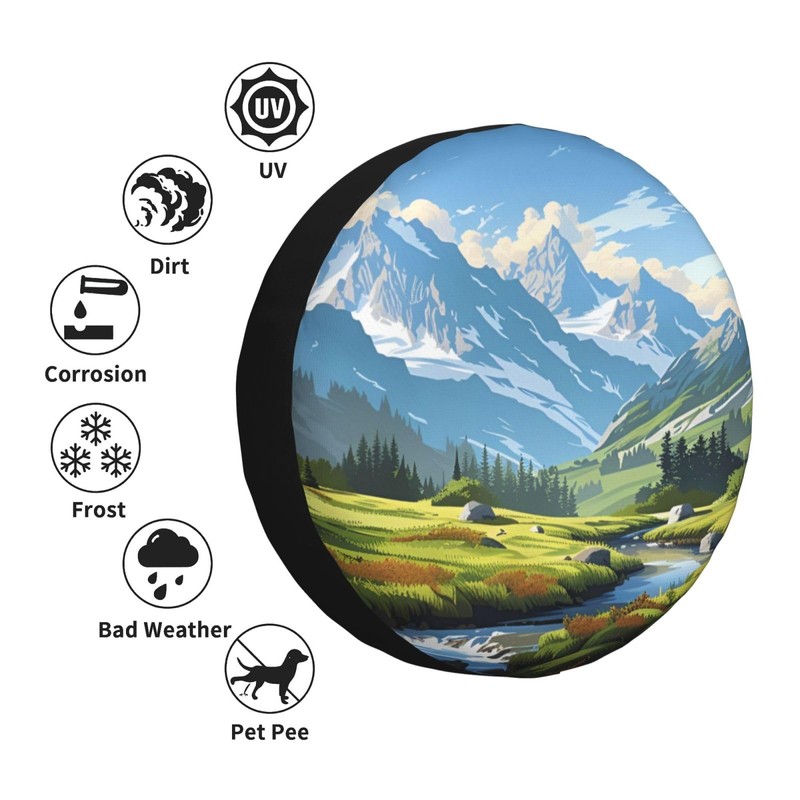 KiuLoam Mountain Landscape Nature Blue Green Spare Tire Cover Waterproof Dust-Proof Universal Sunscreen Wheel Tire Covers Fit for Trailer, RV, SUV and Many Vehicle 17 Inch