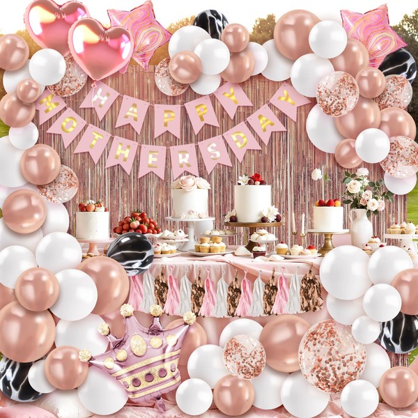 KIVEE Happy Mothers Day Decorations Kit - Pink and Rose Gold Balloons Happy Mother's Day Banner for Brunch Home Garden Mother's Day Party Supplies Decor