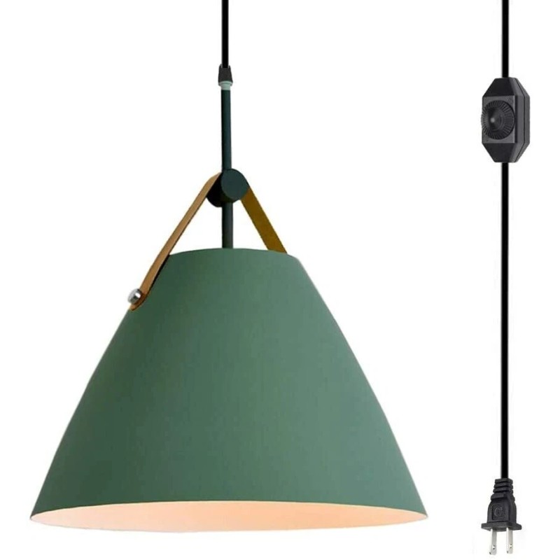 Kiven Dimmable Cone Pendant Light 1-Light Plug-in Pendant,15 Foot Dimmer in-Line On/Off Switch,10.63'',Green