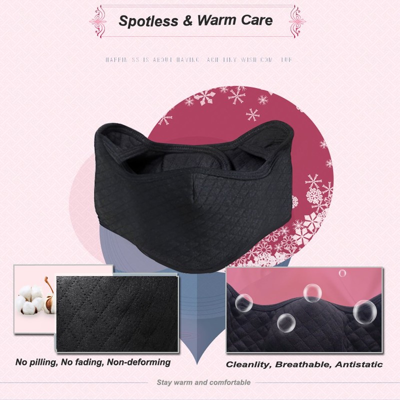 • CLEANLITY & BREATHABLE: This winter face mask features double layer high quality cosy and warm cotton, no pilling, no fading, non-deforming and well sewing, the special stomatal design keeps the mask in dry and do not sultry. It is cosy, breathable, antistatic, durable, stay warm and comfortable.