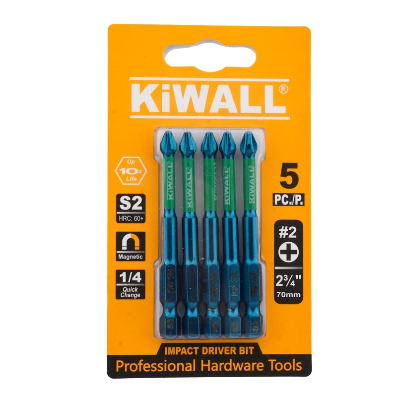 KiWALL Phillips Bits #2 Impact 5-Pack,2.76 Inch Phillips Head PH2 Anti-Slip Magnetic Drill & Screwdriver Bits,S2 Alloy Steel,1/4" Hex Shank for Impact Drivers,Power Drill
