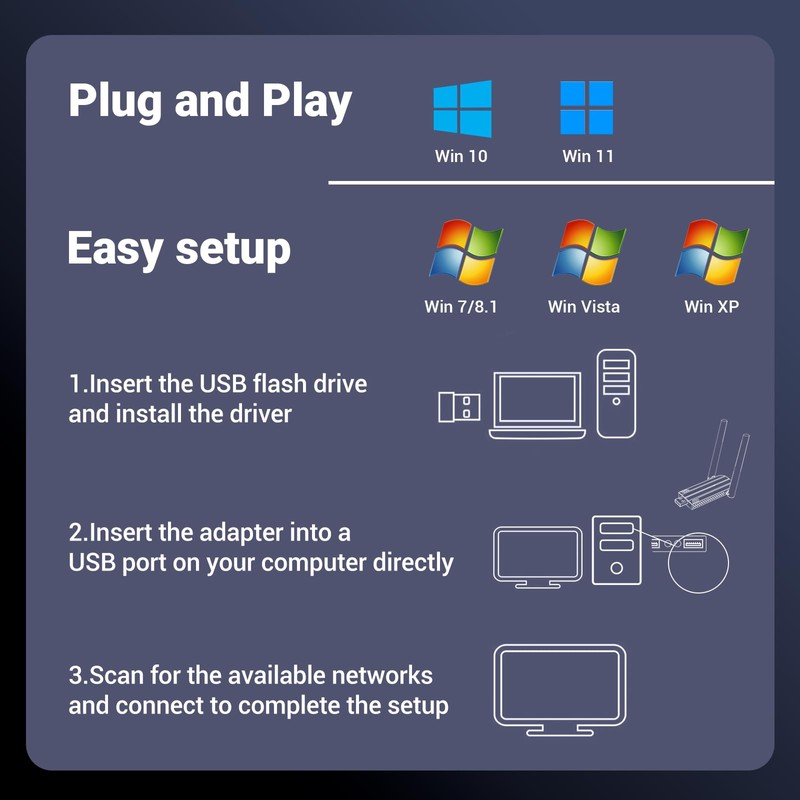 - Enjoy hassle-free setup with the portable USB 3.0 WiFi dongle. Plug and play functionality allows for quick and easy installation on Windows 10 and 11 - simply plug the adapter into a USB port and you're ready to connect to the Internet. For other operating systems, simple driver installation is required. The USB 3.0 interface also ensures maximum data transfer speeds and performance.