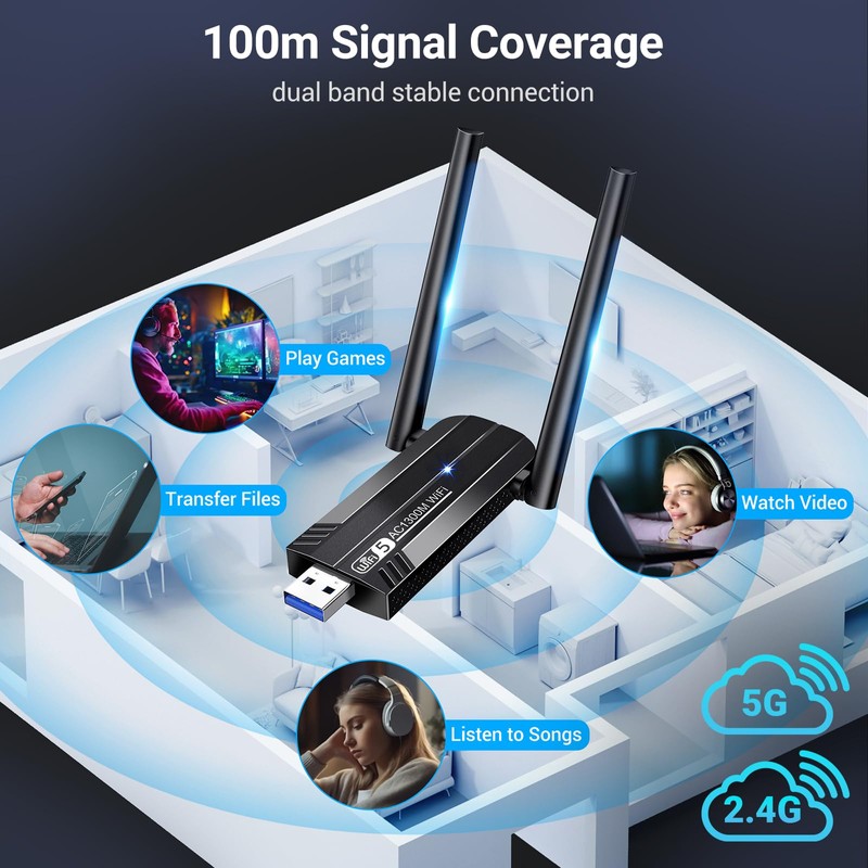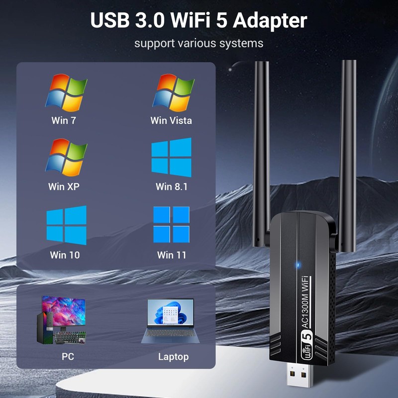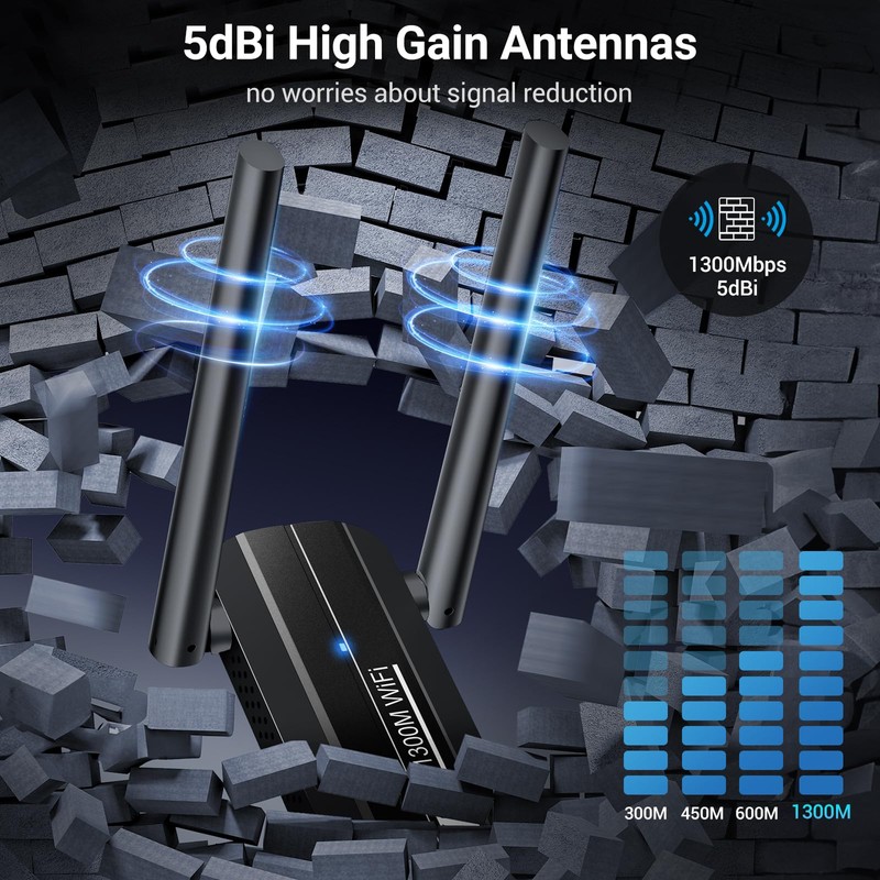 - Lightning Fast 1300Mbps Internet Speeds: The USB 3.0 WiFi dongle provides ultra-fast wireless speeds of up to 1300Mbps, perfect for bandwidth-intensive activities such as HD streaming and online gaming, and ensures a lag-free experience.