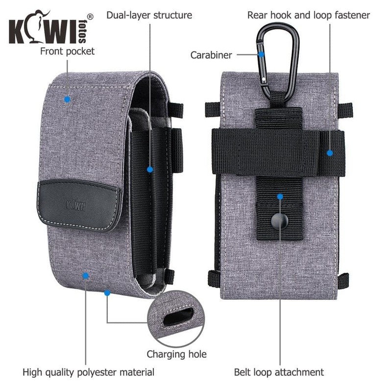 KIWIFOTOS Dual Layer Mobile Phone Travel Bag Shoulder Bag Holster with Shoulder Strap Multifunction for Smartphone Power Bank Card Inner Dimensions 160x84x15mm (6.3x3.3x0.6)