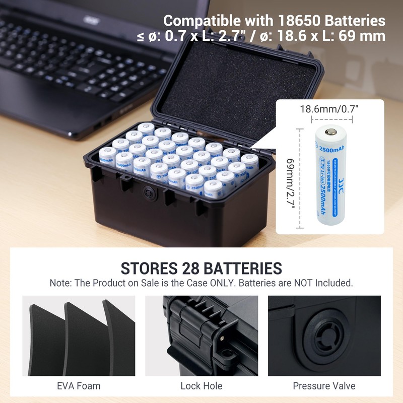 • Esta funda de batería de moneda está hecha de material ABS de alta calidad y ecológico, que es ignífugo, a prueba de golpes, resistente y duradero. La superficie de la funda está diseñada con un acabado mate, proporcionando un agarre cómodo. El punto de pivote utiliza una varilla pivotante de acero inoxidable. Además, los dos interruptores de bloqueo están diseñados con un diseño enchufable, por lo que es fácil de desbloquear y evitar que se salga automáticamente, asegurando la estabilidad del almacenamiento de la batería.