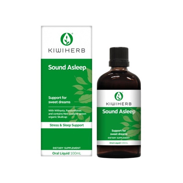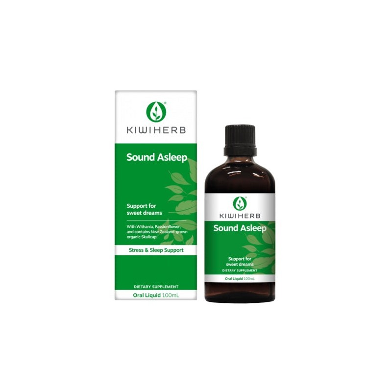 Kiwiherb Sound Asleep is a fast-acting herbal aid containing NZ-grown Skullcap, Withania and Passionflower which are traditionally used in Western herbal medicine to assist falling asleep faster, relieve sleeplessness, and support the nervous system for a healthy sleep. This easy to use liquid formulation is ideal during times of stress. Taken 30 minutes before bed to help with a better night’s sleep, naturally.