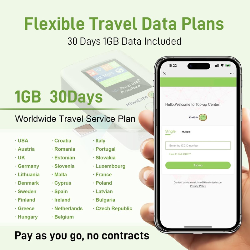 • 【Flexible Plans and Preferential price】Pay as you go WiFi. KiwiSIM 4G LTE mobile wifi hotspot offers service in local US and European data packages, Data by GB, Day or Month. No contract, no credit card check. Cancel anytime. Average cost lower than mainstream operators.