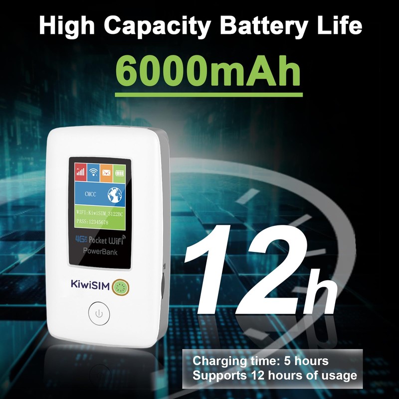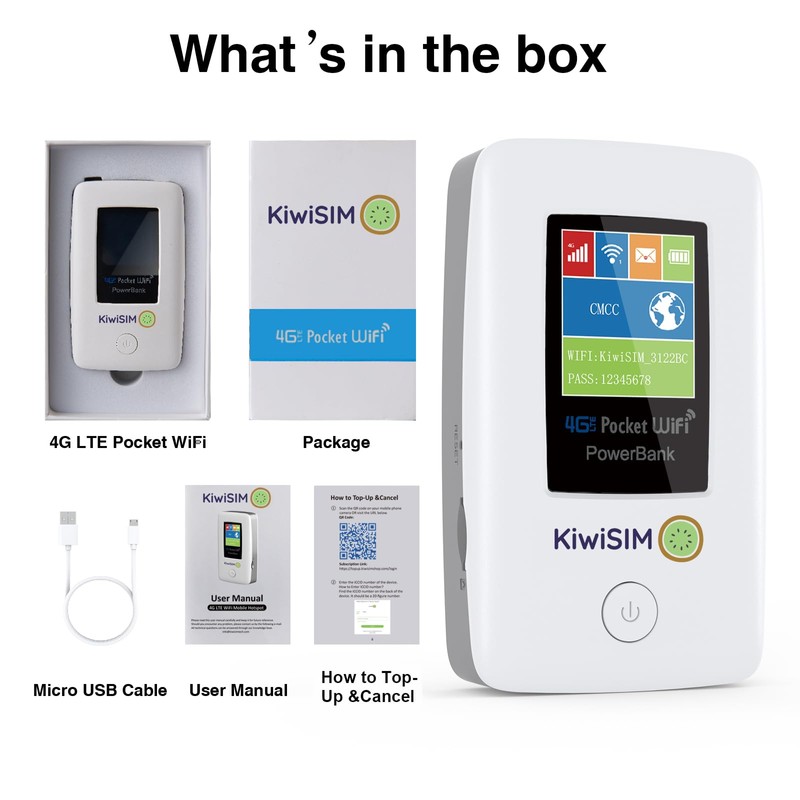 • 【Built-in 6000 mAh Power Bank】KiwiSIM hotspot WiFi can be used continuously for over 12 hours, and charging for 5 hours at night allows for all-day use. 4G Wi-Fi hotspot shares the network with up to 10 smart devices (9 WiFi +1 USB connection) at the same time, such as mobile phones, laptops,computers, laptop, smart TVs and other devices. Pocket WiFi for international travel can be indoor and outdoor use, like home, dorm, office, car, RV, camping, climbing, airport, hotel, highway and travelling. Your family and friends can easily connect to WiFi together.