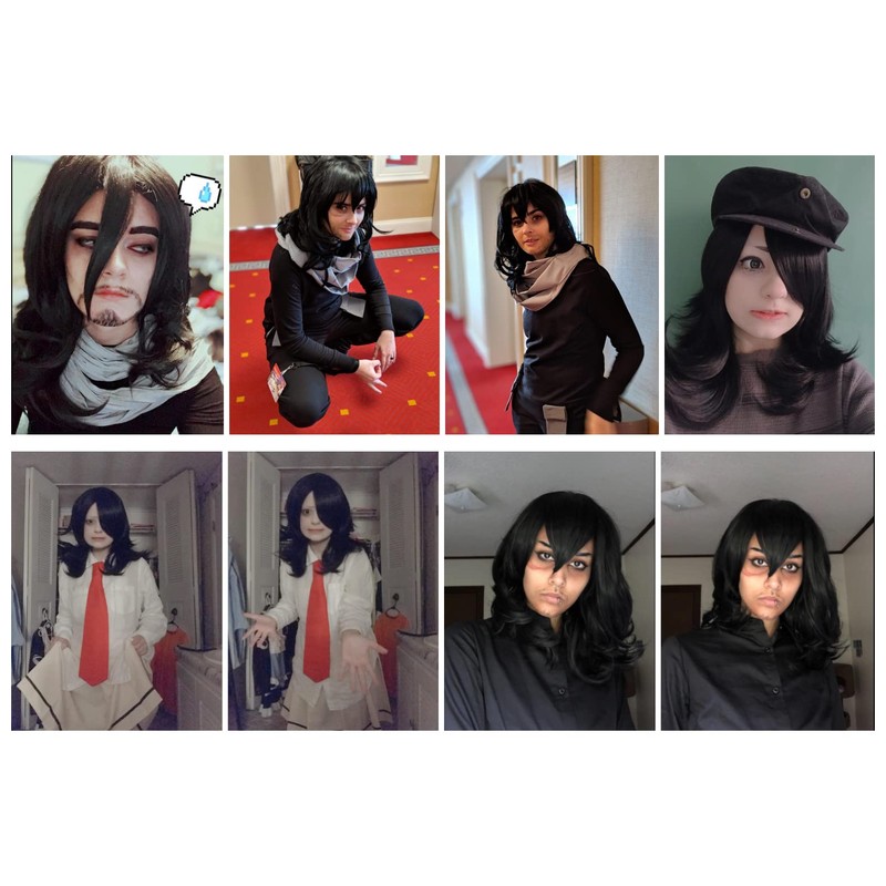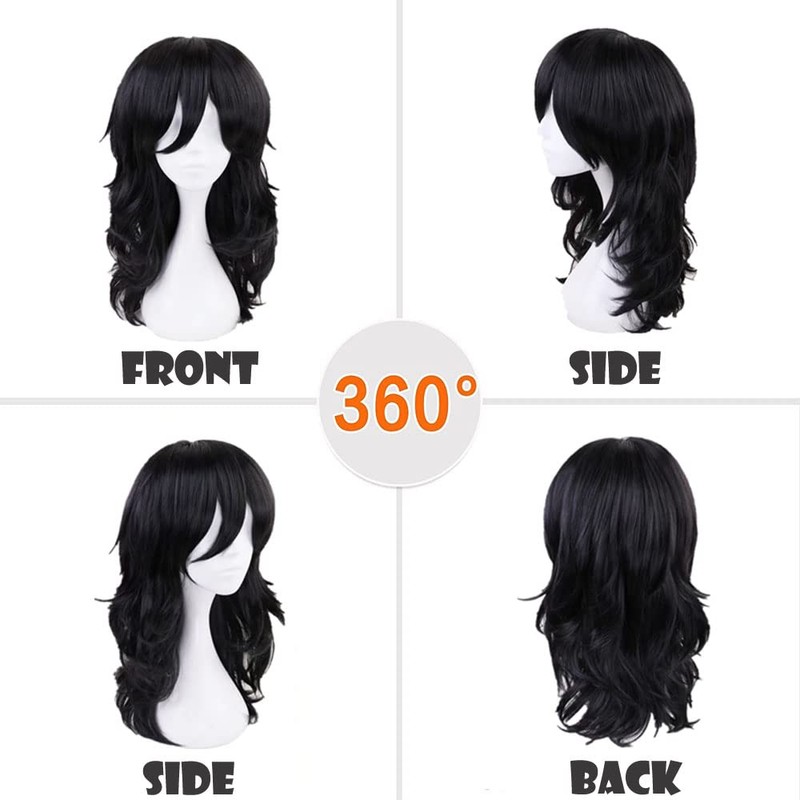 KiyaCos Heat Resistant Medium Length Black Fluffy Curly Wavy Shota Aizawa Cosplay Wig Anime Daiy Wear Hair Women Man Full Wigs