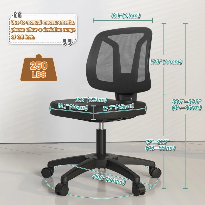- Model Name: Armless Ergonomic Swivel Home Office Task Chair