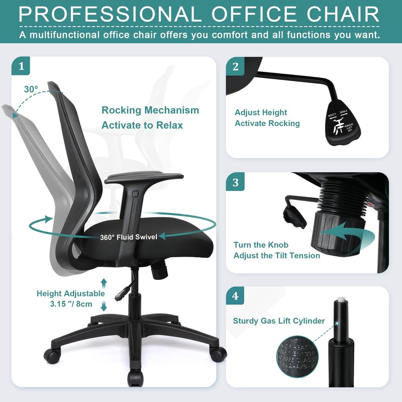 - Multifunctional Office Chair: Our chairs feature adjustable lumbar support, 360° swivel, adjustable height and flexible swivel casters to enhance work efficiency