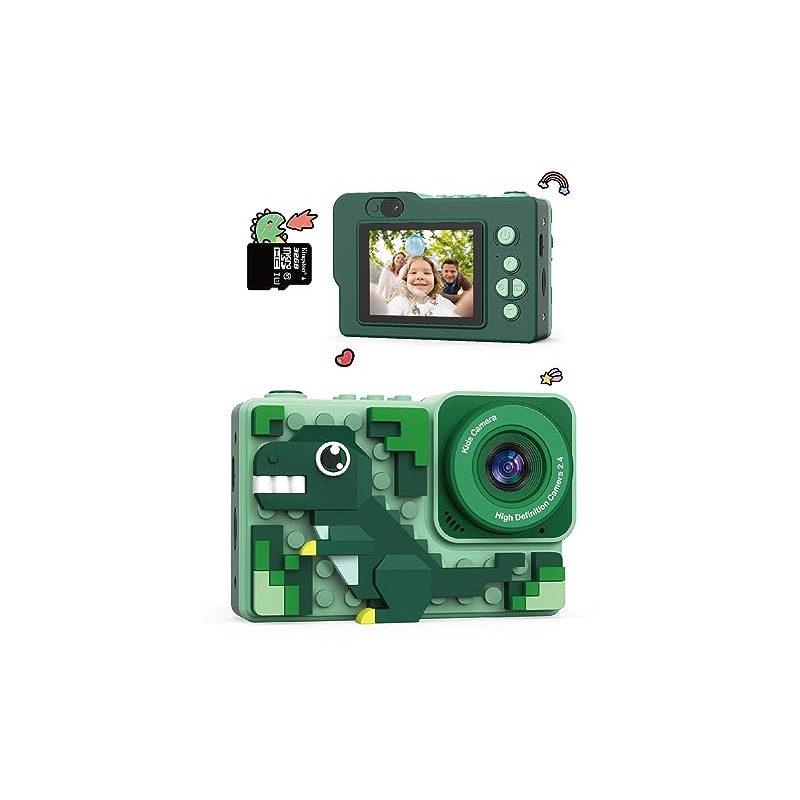 Kizeefun Kids Camera, Cartoon Dinosaurs New Building Block Kids Cameras Christmas Birthday Gifts for Boys Girls Age 3 4 5 6 7 8 9 10 11 12 Years Old, 32GB SD Card Included