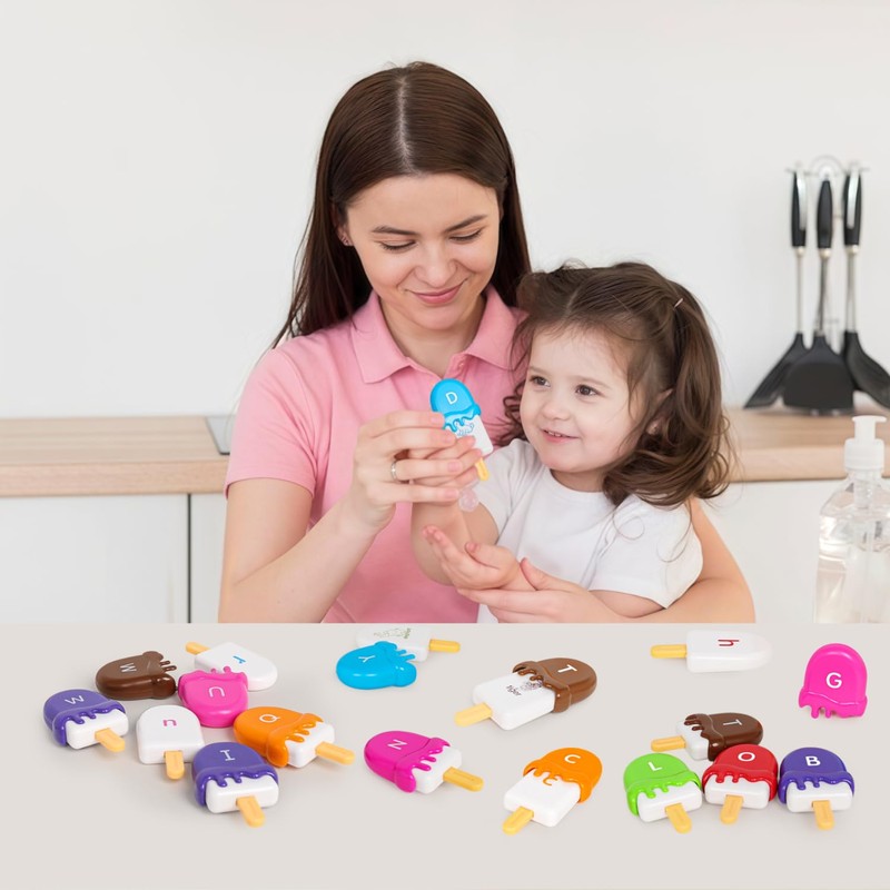 kizh Alphabet Learning Toys Matching Letter ABC Fine Motor Toy Double-Side Ice Cream Toys Preschool Learning Activities Montessori for Toddler Kids Ages 2 3 4 5