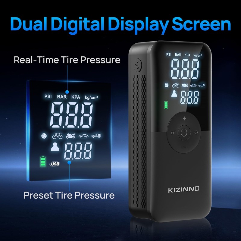KIZINNO Electric Air Compressor Portable Bike Pump Car Tire Inflator, Max 150 PSI, Auto Shut-Off Air Pump with Presta and Schrader Valves for All Bicycles Motorcycles and Cars