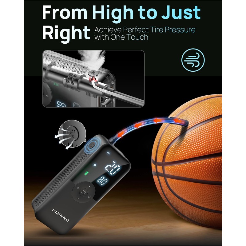 - Your Roadside Savior:This cordless tire pump delivers 150 PSI max pressure - inflating mountain bike tires from 0-50 PSI in 60 seconds, road bike tires to 100 PSI in 70 seconds, and car tires (195/65 R15) from 28-36 PSI in 60 seconds. Built with built-in storage and compact design, it's the ultimate emergency tool for cyclists and drivers on-the-go