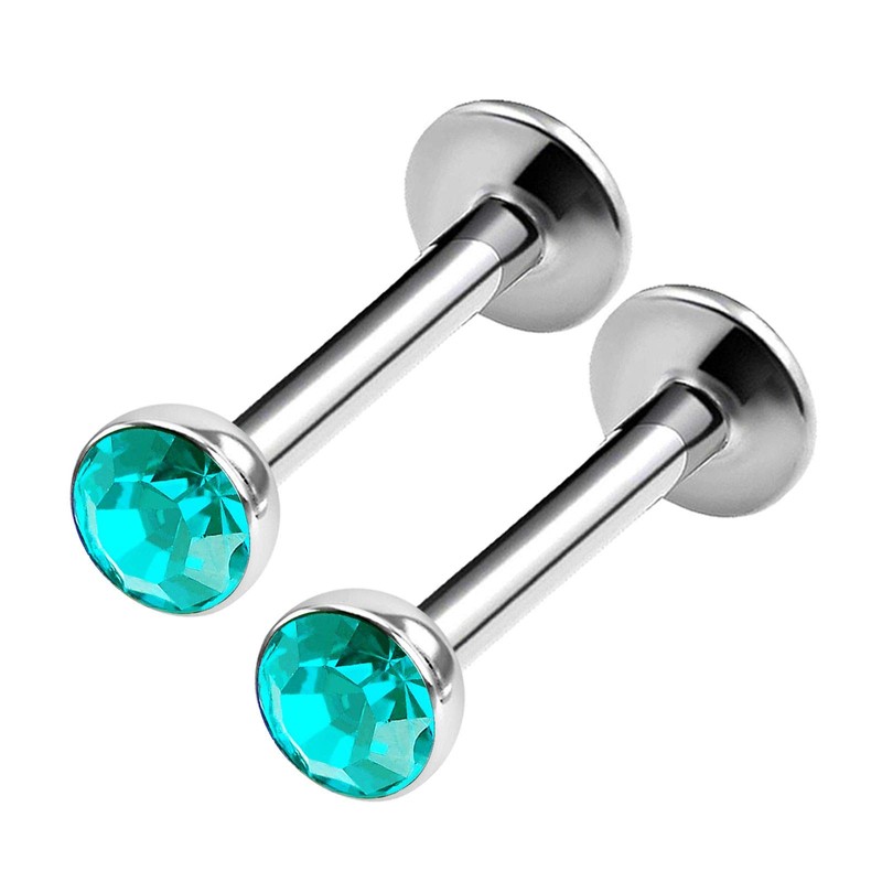 KJM Fashion 2 Pcs Surgical 316L Steel Labret 1.2mm 16g Earrings, Crystal