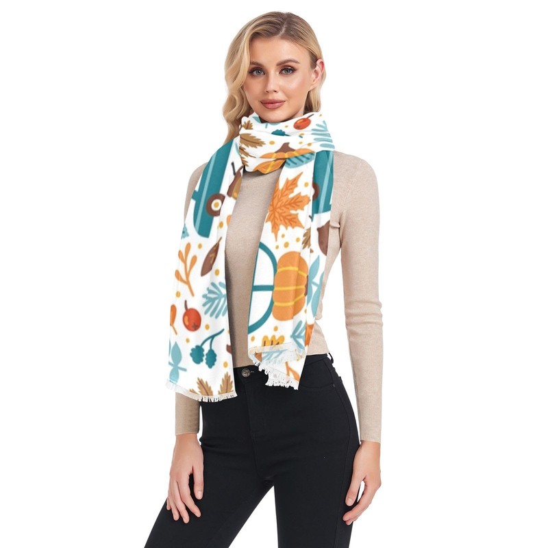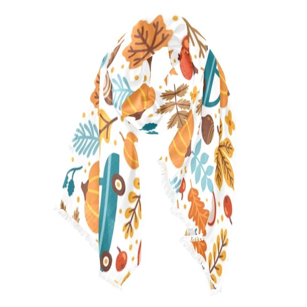Kjovgcb Soft Women Long Scarf Satin Scarves Wraps Neckerchief Linen Silk Shawl Large Stole Headscarf for Wedding Party Gift Print Pumpkins on Car Acorns Autumn Floral Falling Leaves