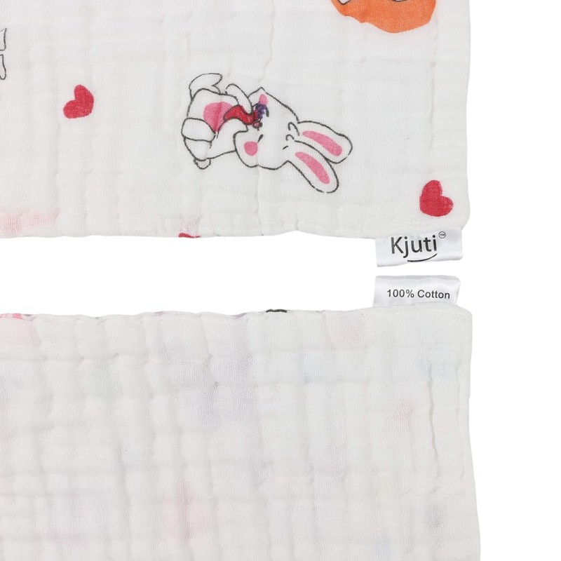 Kjuti Muslin Baby Burp Cloths Gentle 100% Cotton Ultra-Absorbent and Soft 6-Layer Design Hypoallergenic 20x10 3-Pack Cuddle-Soft for Sensitive Skin (Snuggle Bunnies)