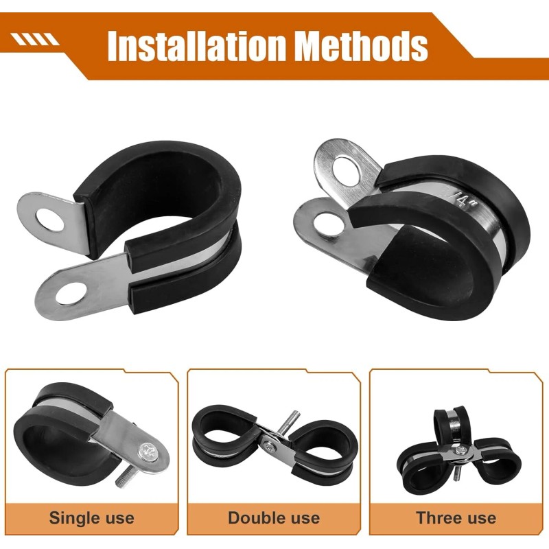 - Premium 304 Stainless Steel: Metal cable clamp made of 304 premium stainless steel material and high quality rubber cushioned. Resistant to salt, rust, corrosion, water and oil. It has good flexibility, protects the tube well and keeps the clamp firmly in place.