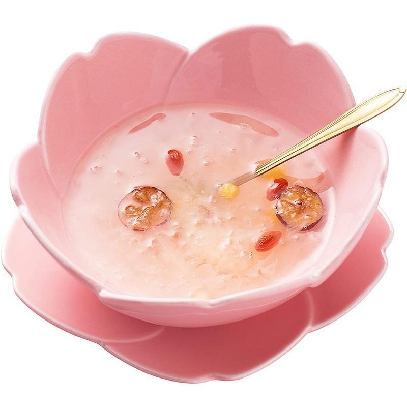KKGUD Cute Cherry Blossom Ceramic Serving Bowl with Saucer and Spoon 16oz Pink