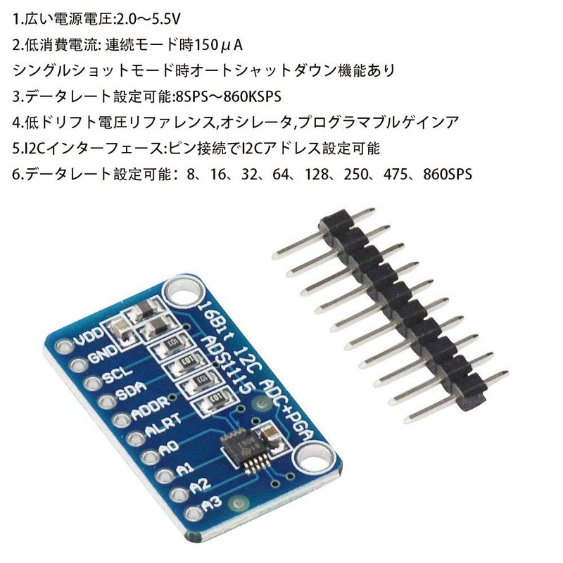 • 16-bit AD converter with gain configurable amplifier. High precision, low power consumption, I2C connection