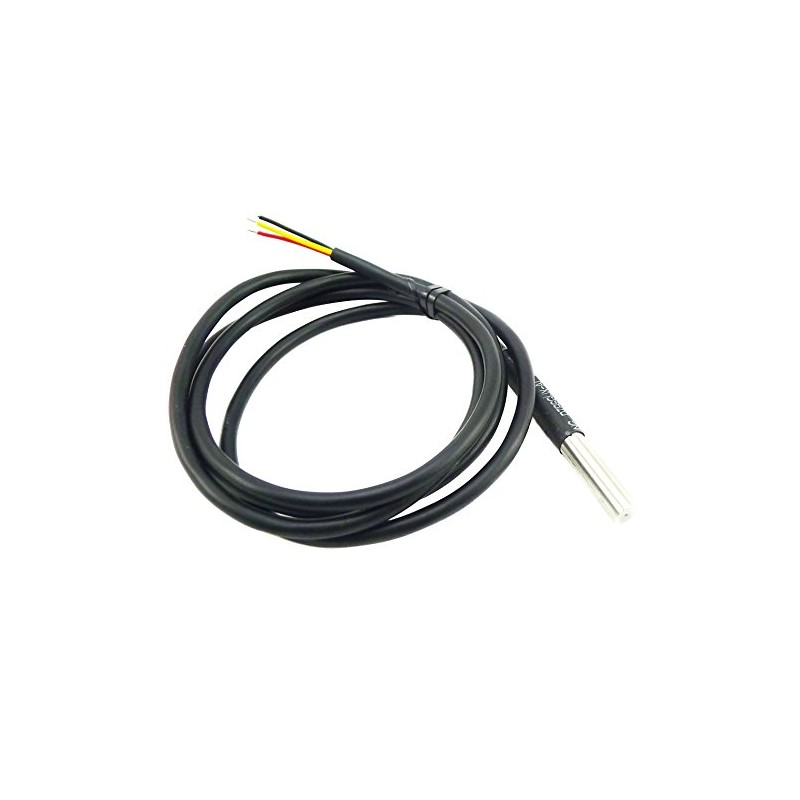 Pre-wired and waterproof version of the DS18B20 sensor. Useful when you need to measure something far away or wet