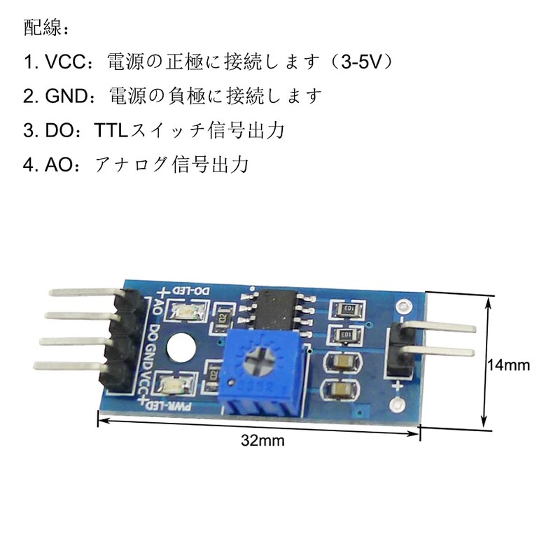 - LM393, use wide voltage comparator, TTL level output, TTL output effective signal low level