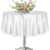 KKJIAF 1 Pack 90 Inch Round Table Cloth, White Overlay Satin Table Cover for Round Tables, Silky Satin Bright Half Round Tablecloth for Wedding Dining Table Buffet Parties Banquet Decoration
