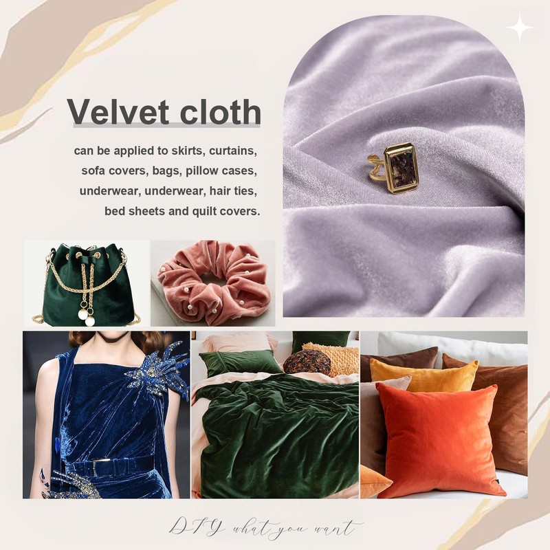 - Versatile Use: Due to velvet fabric is luxurious texture and comfortable elasticity, it is highly favored in costume design for dance performances and role-playing, often used to create elegant evening dresses, dresses, skirts, and tops. It is also suitable for sewing household textiles, such as curtains and chair covers.