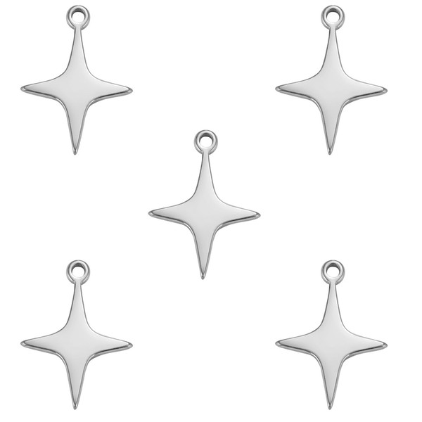 KKJOY 5Pcs Stainless Steel Charms for Jewelry Making and Crafting, Star 4-Pointed Pendant Mini Charm Craft Supplies Accessories for DIY Bracelet Necklace Earrings