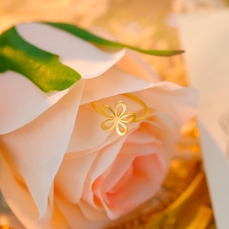 - Flower rings: flowers are one of the most common design elements in fashion jewelry, and flower rings come in a wide range of styles, so you can wear them on your hand and make yourself look even more beautiful.