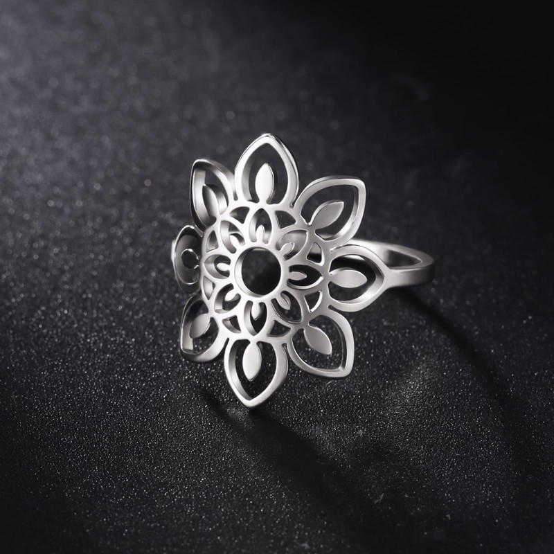 kkjoy Lotus Flower Ring Stainless Steel Eight Petals Gift for Women Girls, Stainless Steel, No Gemstone