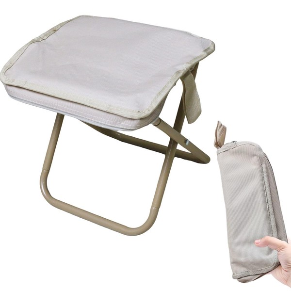 KKLM アウトドア折りたたみ椅子 小型軽量 アウトドアに最適な超軽量コンパクト折りたたみ式キャンプチェア 収納袋付きで持ち運び簡単 耐荷重150kgまでOK (カーキ)