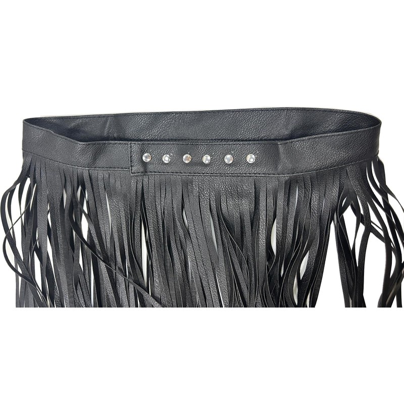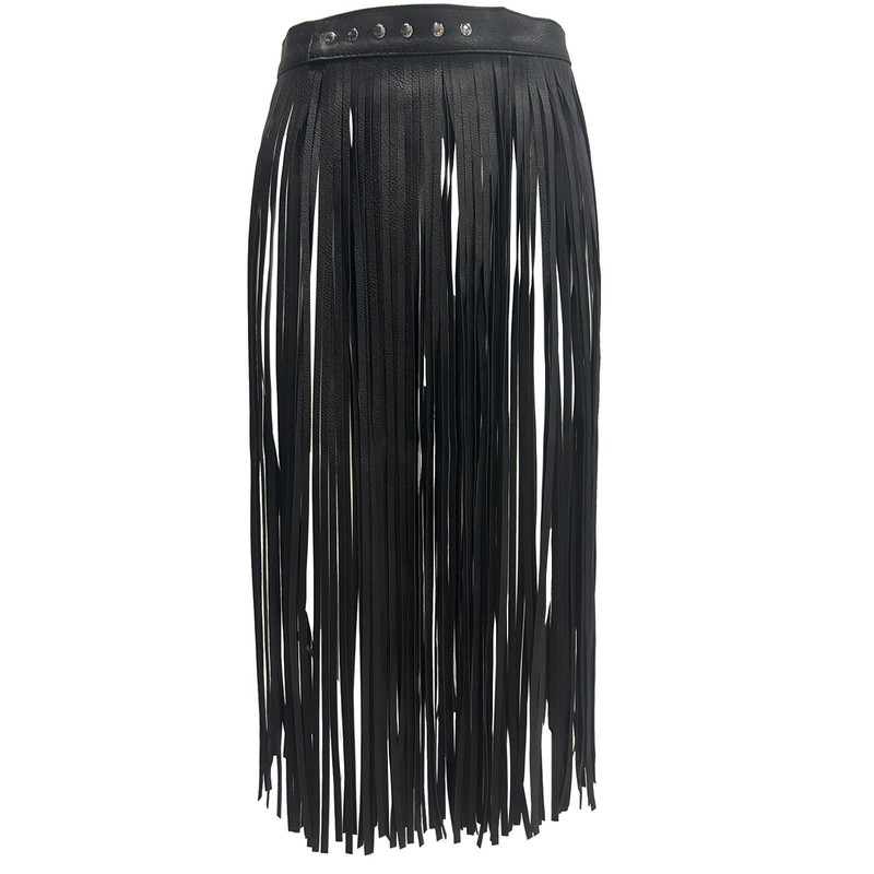 KKmeter Women PU Leather Long Fringe Skirt Waist Belt Girdle Adjustable Buckle Rave Rocker Dance Performance Costumes (Black, Large)