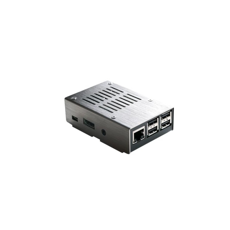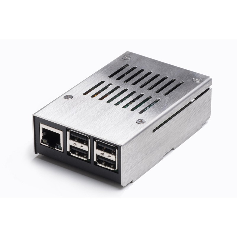 - Durable, compat, effective, yet presentable metal case for Raspberry Pi 3B ; Brushed stainless steel cover, black steel base