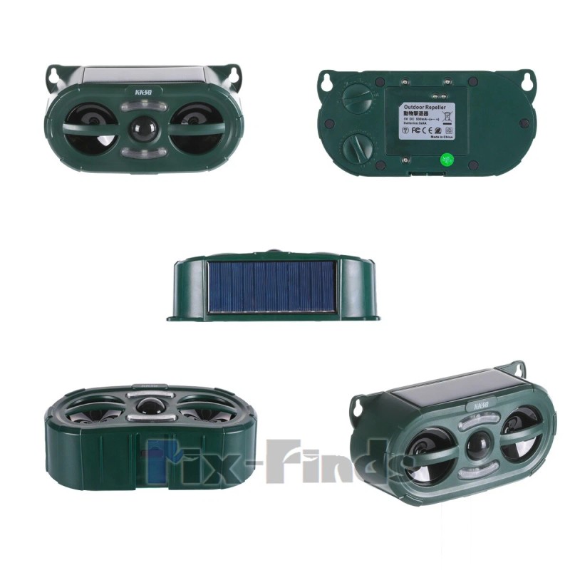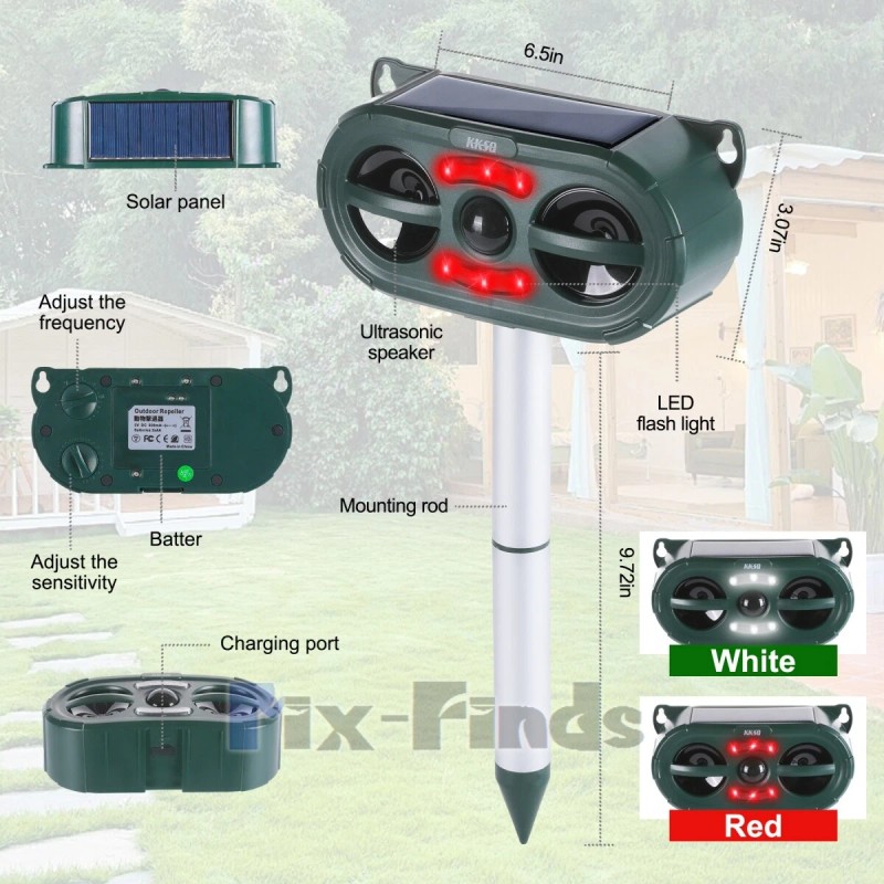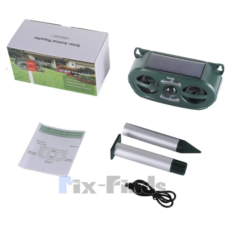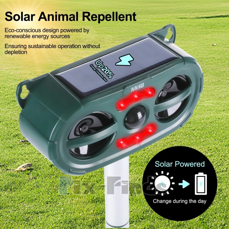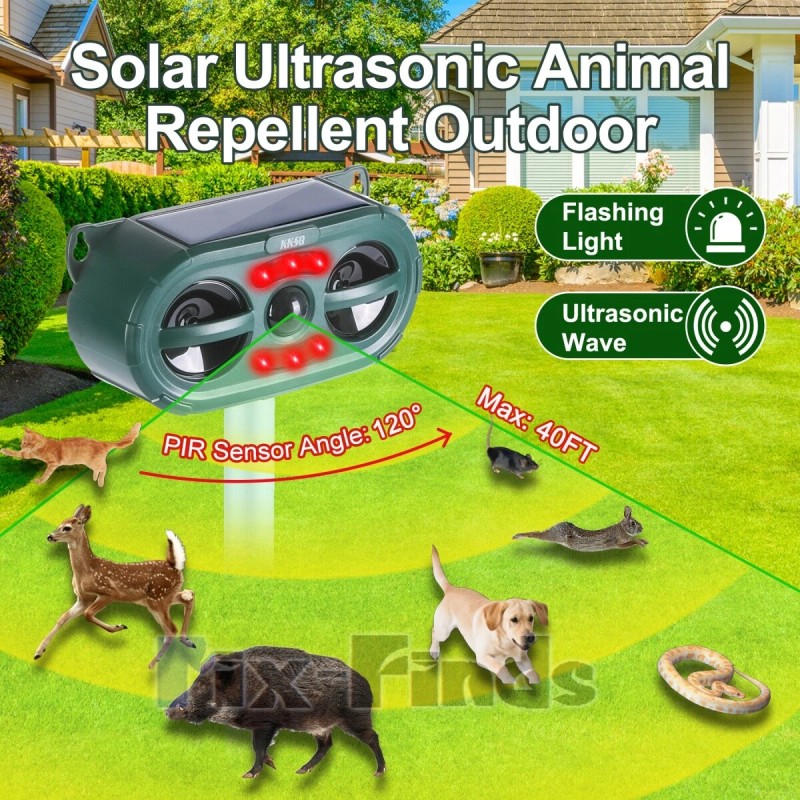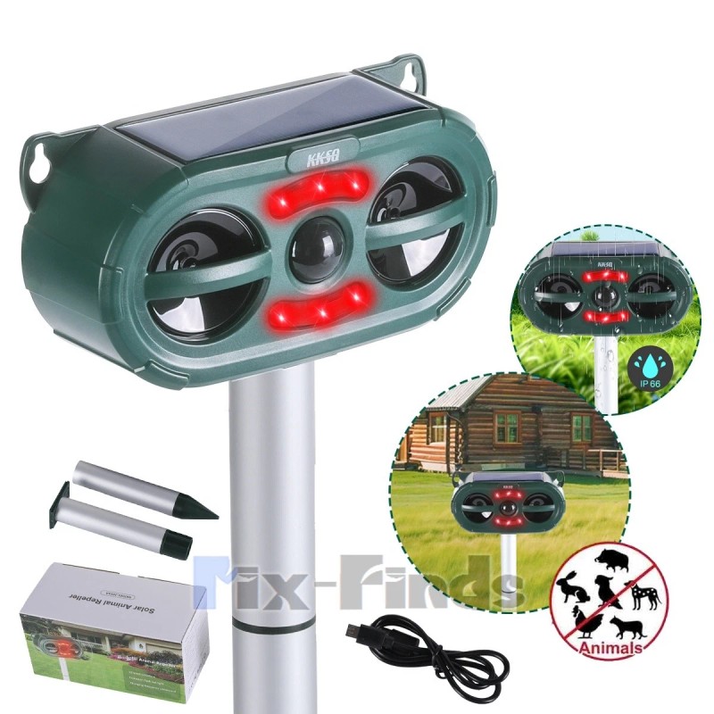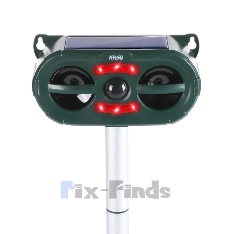 KKSQ Ultrasonic Animal Repeller Solar w/ Flashing LED PIR Sensor Dog Cat Repellent US