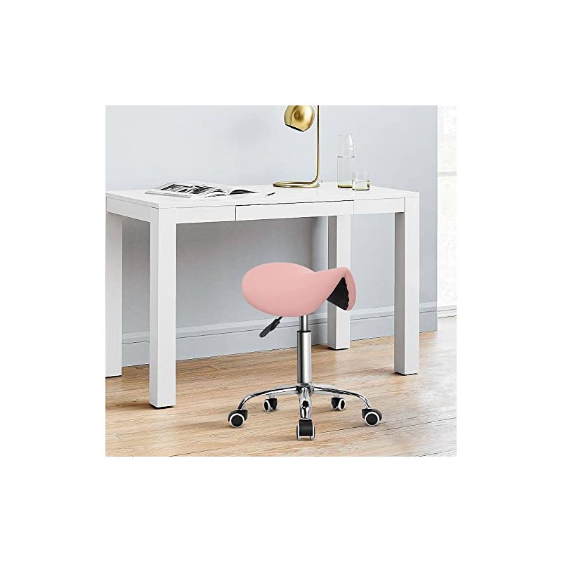 KKTONER KKTONER Rolling Saddle Stool PU Leather Swivel Adjustable Rolling Stool with Wheels Salon Chair (Pink)